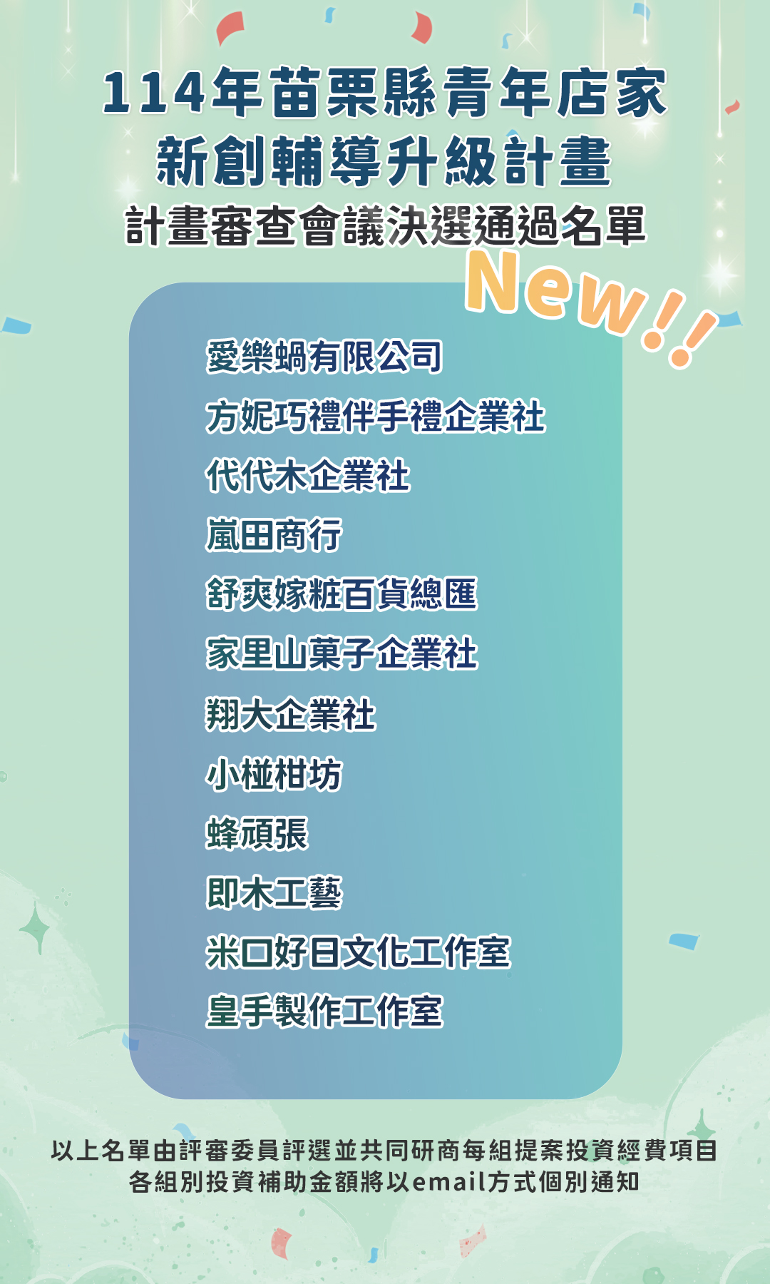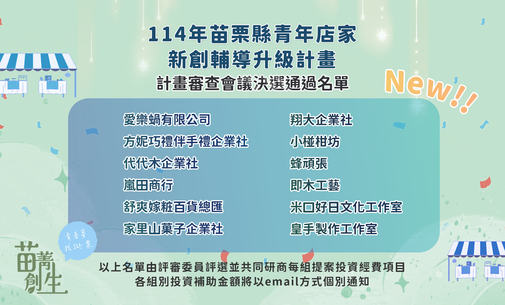 苗栗縣政府為鼓勵縣內發展之「青年店家」,透過青年品牌創新、創業輔導計畫等資源挹注整合、共同行銷,讓年輕人的創業夢不再遙不可及,期許透過本計畫之輔導店家投資金的挹注,鼓勵青年進行創新開發,培植青年事業體之新創能量,帶動相關產業發展及強化競爭力,希冀有更多的青年朋友願意留鄉、返鄉,朝幸福苗栗的願景邁進。